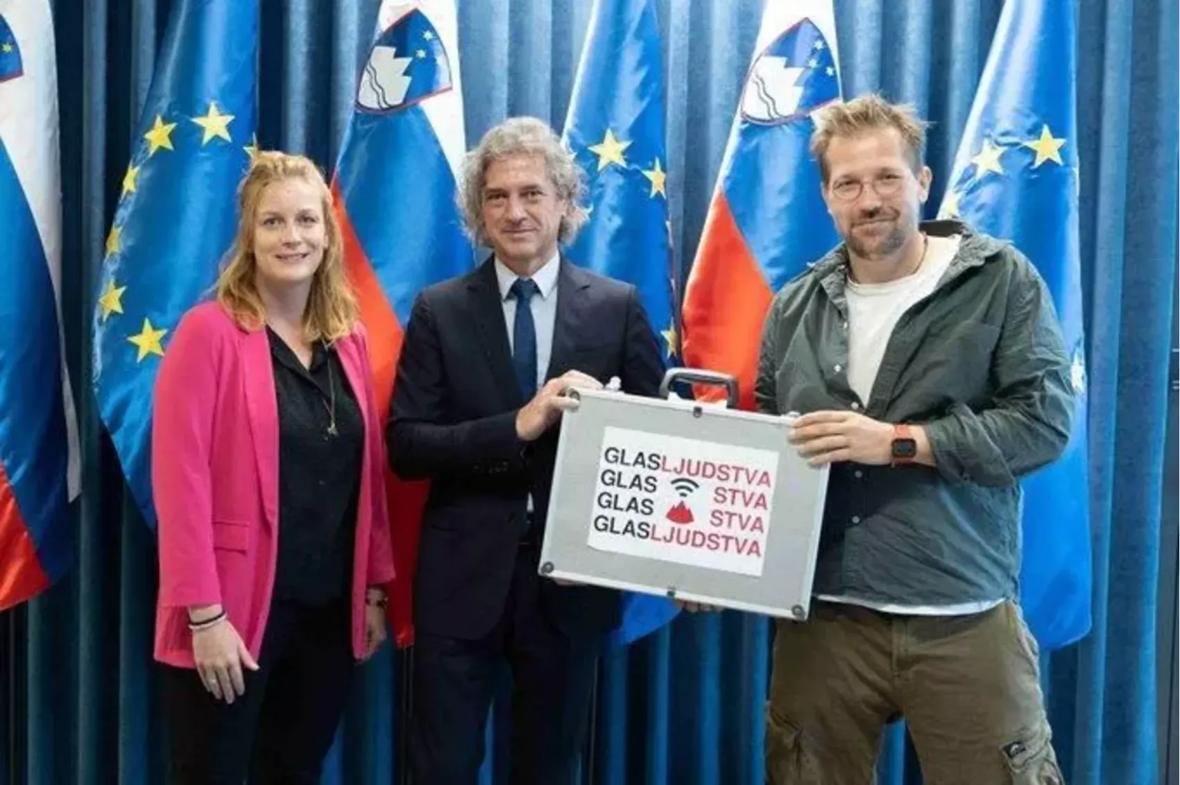 Predstavnika NVO Tea Jarc in Jaša Jenull pri predsedniku vlade Robertu golobu (avgust 2022)