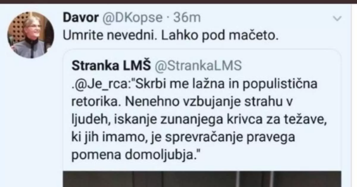 Kopšeta je zaradi teh tvitov celo policija klicala na razgovor, kjer je pojasnil pomen, s čimer je izključil vsakršnjo grožnjo, zato pregona niso nadaljevali. Kršinarjev članek ni bil le pretiran. Bil je namerno zavajajoč, zasnovan tako, da bi diskreditiral kandidata Slovenske demokratske stranke, ki jo več kot očitno tudi v drugih objavah sovraži.