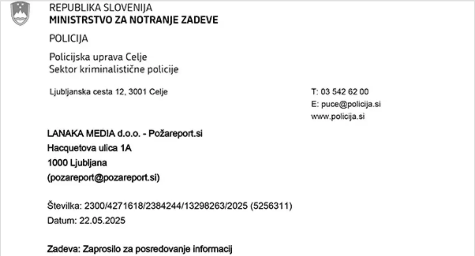 V sodobnih demokratičnih družbah je varovanje novinarskih virov temeljni kamen svobode tiska in neodvisnega novinarstva. Nedavni primer, o katerem piše novinar Bojan požar na svojem portalu Požareport, v katerem je Policijska uprava Celje od njega zahtevala razkritje virov informacij in hkrati molk o tej zahtevi (nora oblika pritiska na novinarja), odpira resna vprašanja o spoštovanju pravnih in etičnih standardov organov pregona. Evidentna je nesprejemljivost takšnih zahtev z vidika pravnih okvirov, poklicnih standardov in širšega družbenega konteksta, hkrati pa obravnava vprašanje neprimernega postopanja policije z uporabo pisnega zaprosila namesto morebitnega informativnega pogovora brez kakršnihkoli pritiskov.
