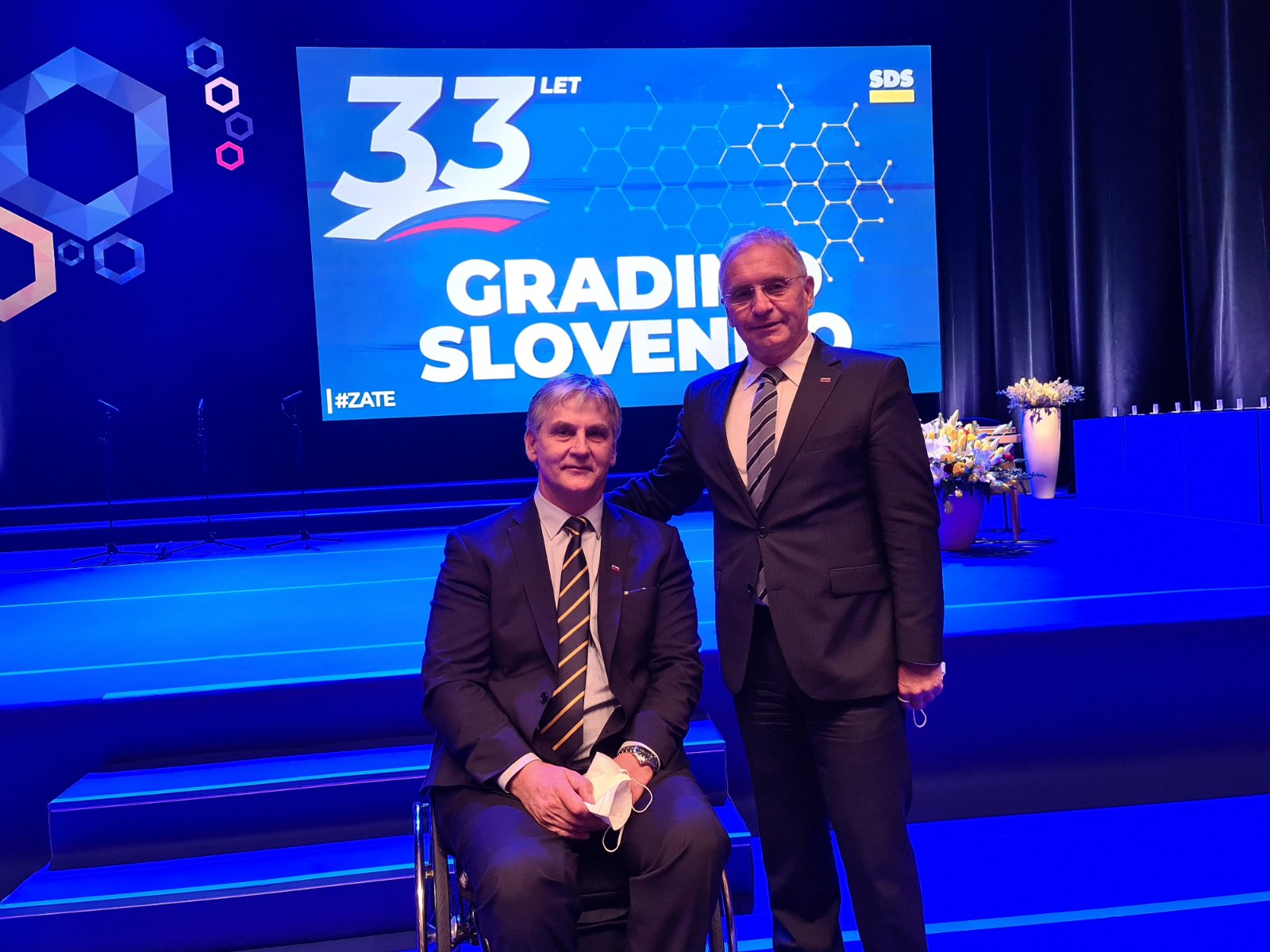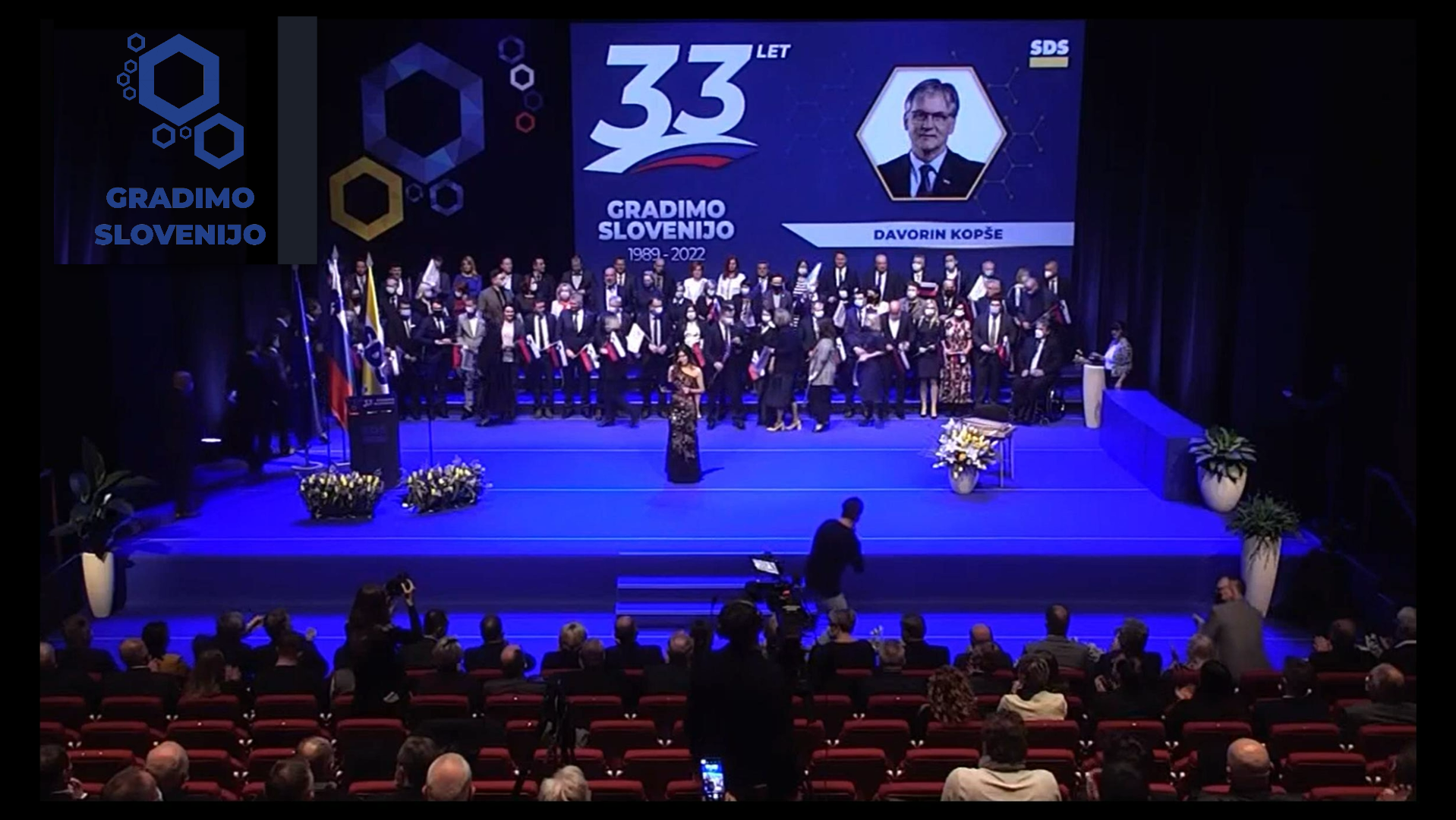 »SDS je v 33 letih postala velika družina. Ustvarili smo Prostor akcije in sožitja vseh generacij. SDS je danes veliko drevo z mnogimi krošnjami in močnimi koreninami. Po celi Sloveniji. Iz nekaj sto smo narasli na nekaj deset tisoč članic in članov in podpornikov. Zmagali smo kar na 10 državnozborskih, evropskih in lokalnih volitvah. Danes bi lahko celo prireditev govorili o rezultatih, ampak bomo govorili ob koncu o tem, kako vidimo Slovenijo v prihodnje. Teh 33 let je šele začetek. Ko bomo obhajali štirideseti rojstni dan SDS, bo minevalo tretje leto drugega polnega zaporednega mandata vlade pod našim vodstvom,« je še povedal predsednik vlade in predsednik SDS Janez Janša in nagovor ob 33. obletnici Slovenske demokratske stranke zaključil z besedami: »Čez 7 let, konec drugega polnega mandata vlade pod vodstvom Slovenske demokratske stranke, se bo naša lepa Slovenija prebila na prvo mesto kot najbolj zaželena destinacija na svetu po kvaliteti življenja. Ker si to zasluži. Ker to zmoremo. ZA SLOVENIJO GRE!«